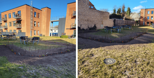 Området, hvor der allerede står bordbænkesæt til samvær og udeliv, har med den nye beplantning fået et frisk pust.